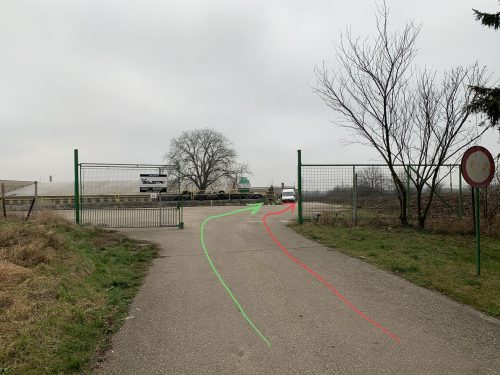 Při příjezdu dle červené barvy od Doloplaz/Nezamyslic stačí přejet přes železniční přejezd a poté se dát cca 150 metrů za ním doprava.
